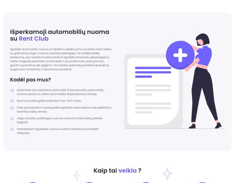 Rent Club siūlo ilgalaikę automobilio nuomą, suteikdama galimybę vairuoti naują automobilį ir jį išsipirkti. Patogus ir ekonomiškas sprendimas Jūsų kelionėms.